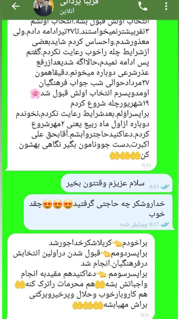 در این بخش, داستان کسانی را میخوانیم که با توسل به امام حسین (ع) و خواندن زیارت عاشورا, درهای موفقیت شغلی به رویشان گشوده شده است. اینجا روایت هایی از حاجت های شغلی است که با دعا و زیارت برآورده شده اند.