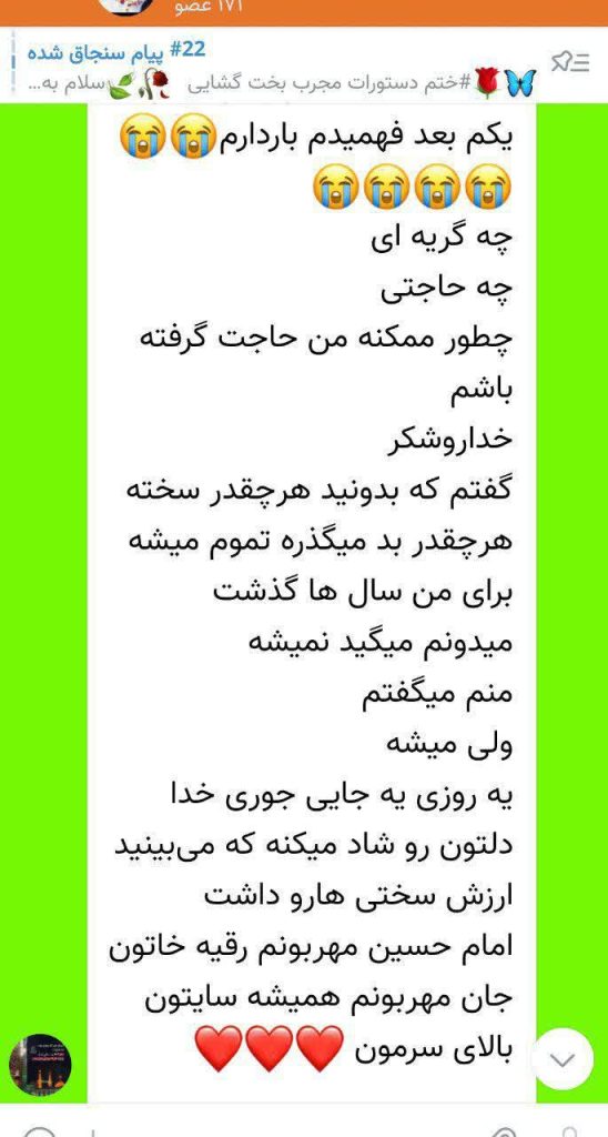 معجزات توسل به اهل بیت علیهم السلام ️ حاجت روایی های اعضای محترم کانال با خوندن زیارت عاشورا به روش حق شناس ️️️ امام سجاد عليه السلام : مَنْ لَمْ يَرْجُ النّاسَ فى شَىْءٍ وَ رَدَّ أَمْرَهُ إلَى اللّهِ عَزَّوَجَلَّ فى جَميعِ اُمورِهِ اسْتَجابَ اللّهُ عَزَّوَجَلَّ لَهُ فى كُلِّ شَىْءٍ؛(1)️