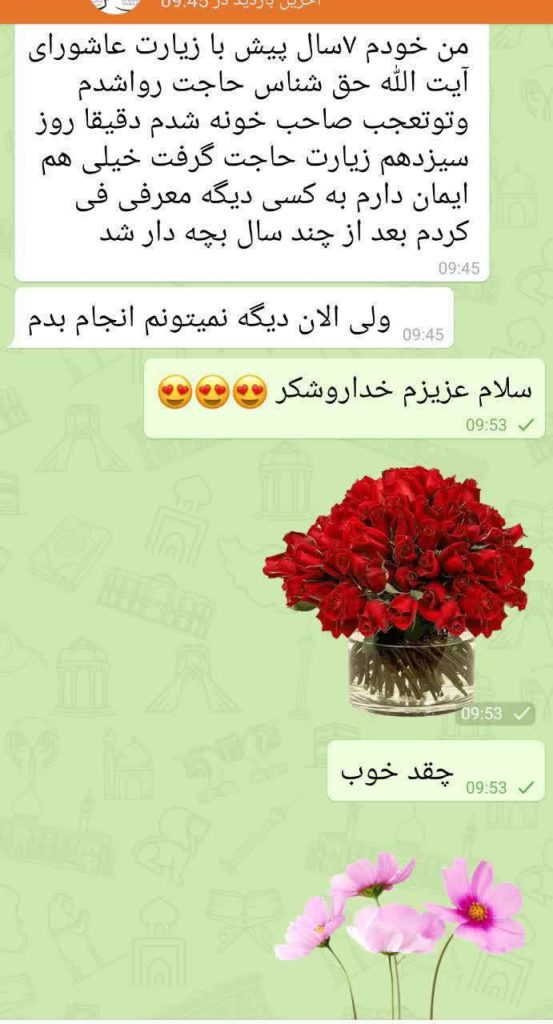 اگر در انتظار گشایش در امر ازدواج هستی, این بخش مخصوص توست. روایت های واقعی از چله زیارت عاشورا به روش آیت الله حق شناس و حاجت هایی که با توسل به سیدالشهدا علیه السلام برآورده شده اند.